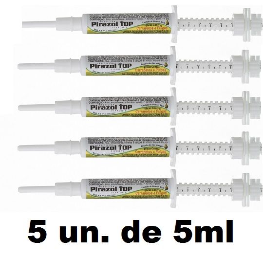 Carrapatos e Pulgas: Diluir 5ml de Pirazol Top em 1 litro de água e pulverizar toda a área do ambiente frequentado pelos animais. Repetir a aplicação uma vez por semana durante 4 à 6 semanas.